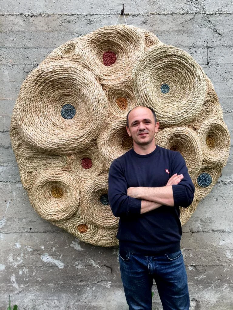 Ruslan Mazlo, hails from the North Caucasus mountainous region of Russia where he lives and works. Mazlo studied art in university, gaining a strong foundation in classical and abstract expressionism where he was able to create his own signature style by fusing Circassian or Adyghian heritage weaving with abstract and symbolism. His material of choice is bulrush, a tall grass which he extracts from the Terek riverside famed by Lermentov's poem 'Terek' and Pushkin's 'Kavkaz'. The bulrush he dries and weaves into different abstract forms composing what they call in his culture an 'arzhin'.